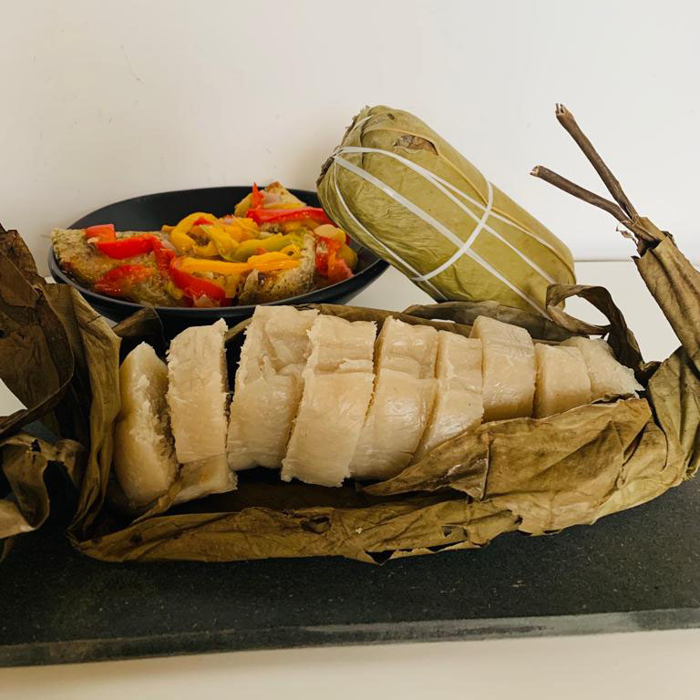 Pain de manioc fermenté, enveloppé dans des feuilles et cuit à la vapeur.